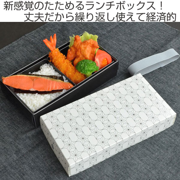 折り畳みランチボックス 一段 800ml バンド付 仕切付き 日本製 スリム モダン ( お弁当箱 ランチボックス 折りたたみ式 弁当箱 コンパクト 電子レンジ対応 持ち帰り箱 花見 行楽 和風 お土産 )