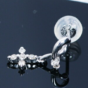 14金ホワイトゴールドダイヤピアス(リボンクロス)