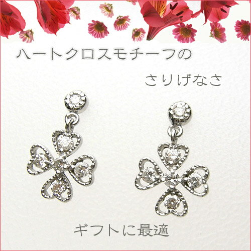 K18ホワイトゴールド ハート&クロスモチーフ ダイヤモンドピアス PUP090713MJ10 10P21Jul09