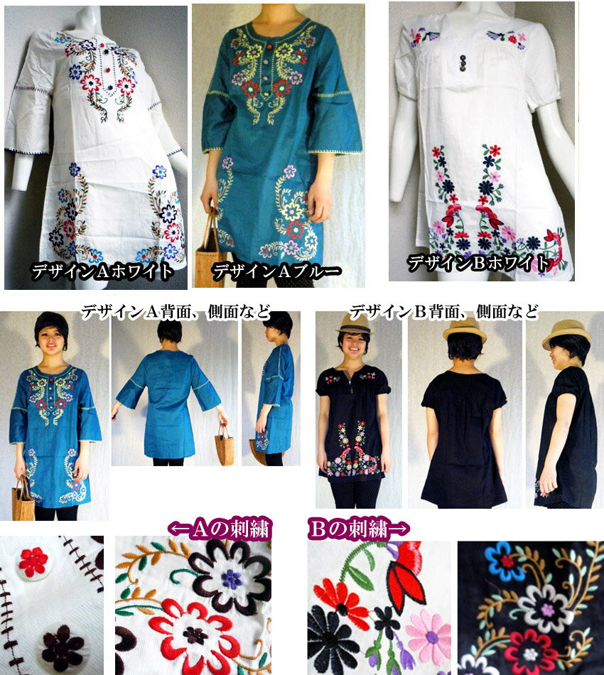 デザインA 着丈80cm 胸囲90cm 肩幅38cm 袖24cm 袖8cm 肩幅 40cm程度 デザインB 着丈74cm 胸囲104cm 袖8cm 肩幅 40cm程度 ※ご注意※ 刺繍の発色やデザインをいかすため、デリケートな生地を使用しています。