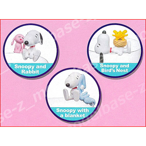 ● Snoopy and Rabbit ● Snoopy with a blanket ● Snoopy and Bird’s Nest の 3種類です。