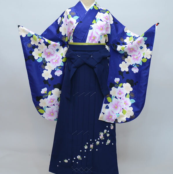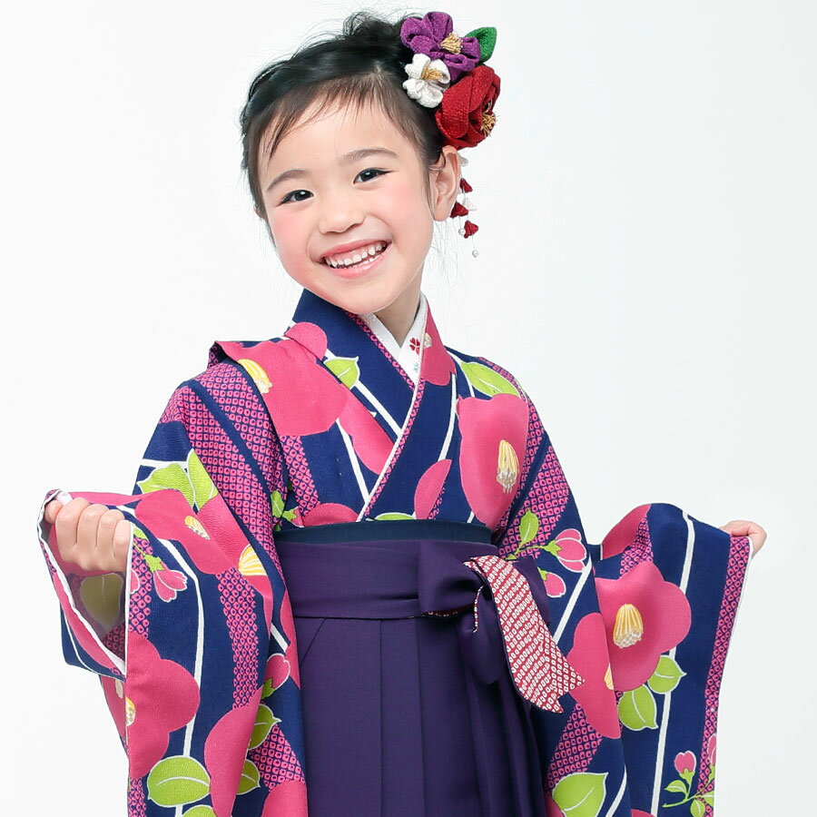 卒園用 小町kids 女児 着物 と 袴 フルセット レンタル 110cm 120cm 7才【往復送料無料】【卒園式・七五三 貸衣装】紺 ネイビー 椿