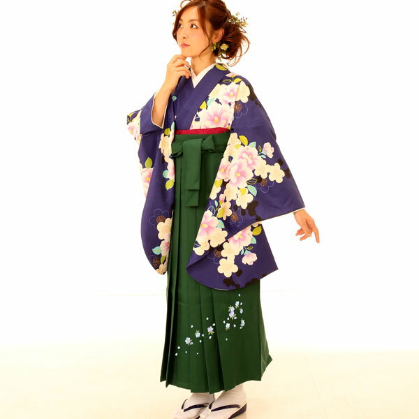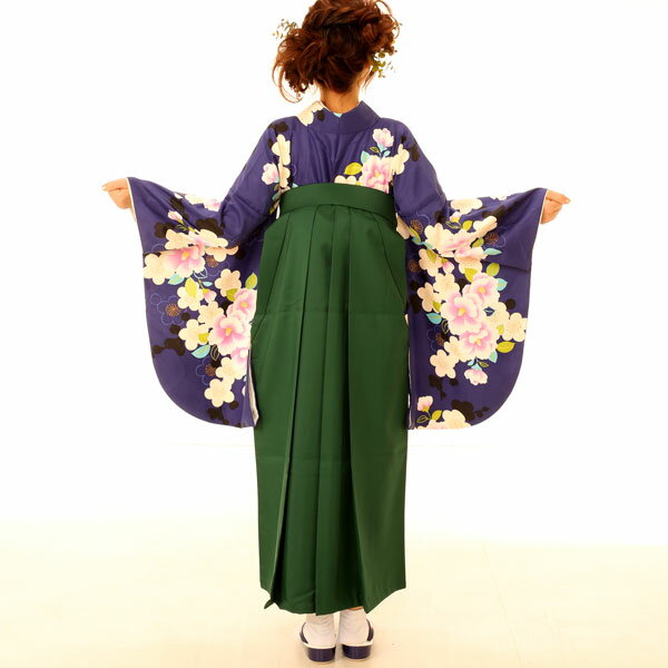 【レンタル】卒業式レンタル 袴セット 一式(履き物別) 着物 グリーン大桜 / 黒無地袴 くろ袴 履き物追加料金で有 アウトレット 卒業袴レンタル はかま シンプル 卒業式 幼稚園 小学校 中学 高校 短大 大学 専門学校 先生 生徒【new_d20】